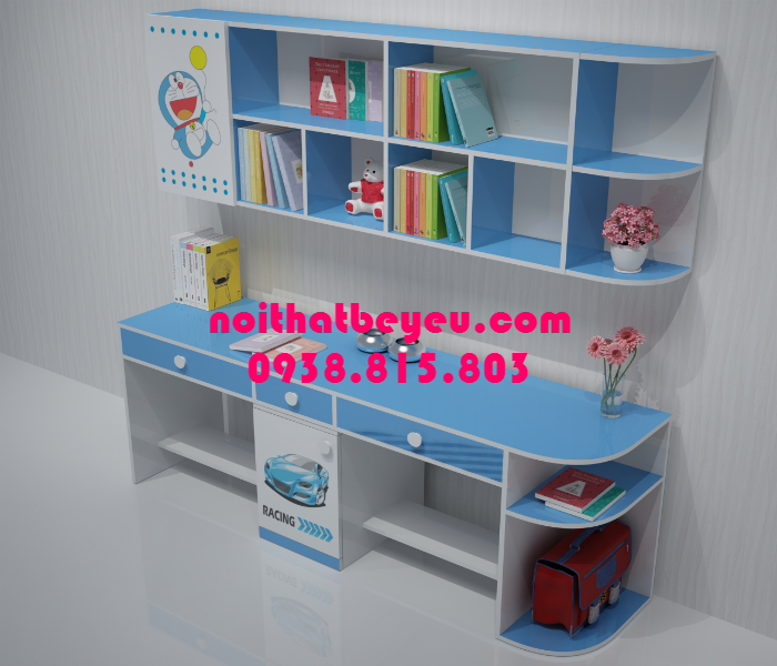 Bàn học trẻ em đẹp cao cấp được thiết kế có kệ sách tiện ích