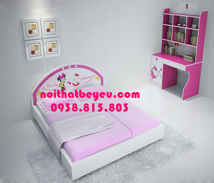 Giường ngủ công chúa được thiết kế được thiết kế theo hình Hello Kitty kết hợp bàn học có giá sách
