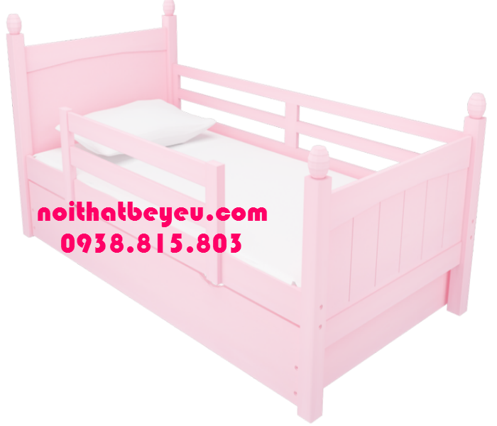 Giường ngủ trẻ em 1m2 gỗ màu hồng xinh xắn.