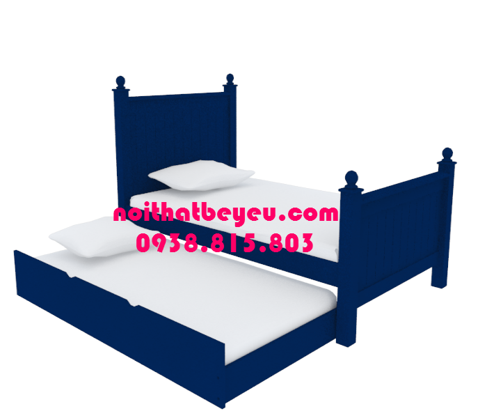 Giường ngủ trẻ em 1m2 gỗ thông khi được kéo 1 giường phía dưới.
