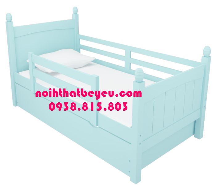 Giường ngủ Trẻ Em 1m2 Gỗ thông màu xanh ngọc