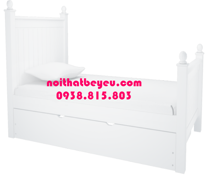Giường ngủ trẻ em 1m2 gỗ thông khi được kéo 1 giường phía dưới.
