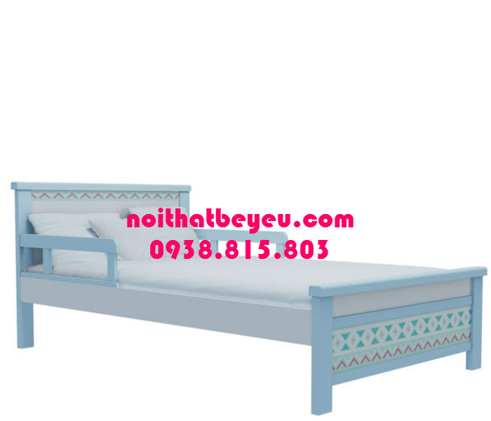 Giường ngủ trẻ em 1m2 gỗ tự nhiên có in hoa văn