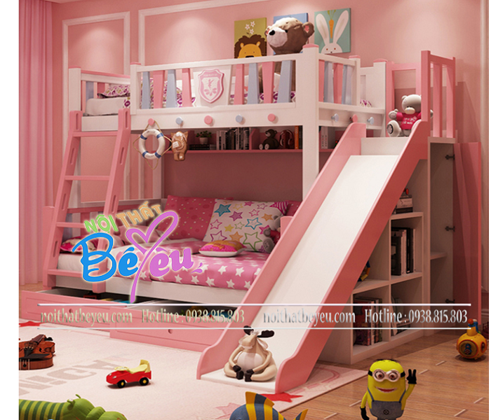Giường tầng có cầu tuột cho bé gái