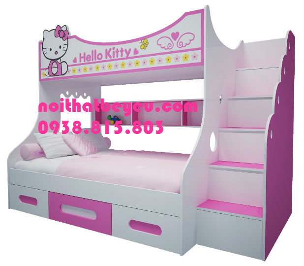 Giường 2 Tầng Trẻ Em hello kitty cầu thang có hộc kéo