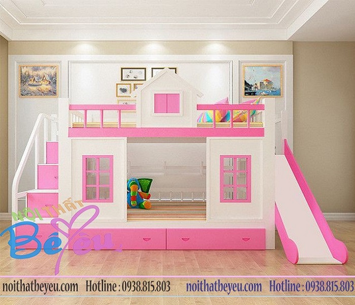 Giường Tầng Cầu Tuột màu hồng dễ thương