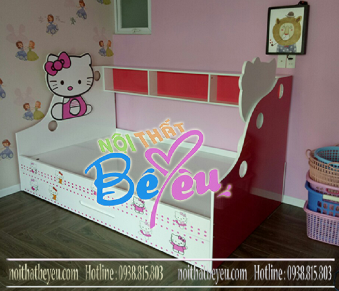 Giường Tầng Lùn Cho bé gái với hình ảnh Kitty