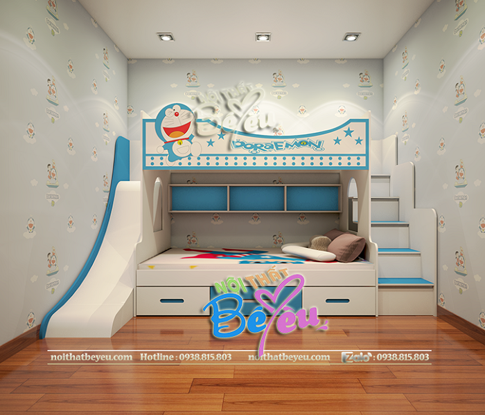 Giường 2 Tầng Doremon cho Bé Trai có Cầu trượt
