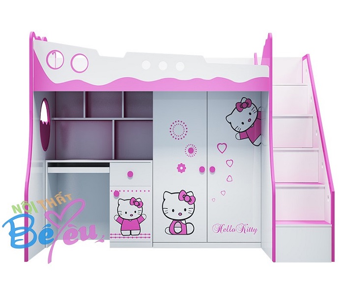 Giường tầng trẻ em kết hợp bàn học Hellokitty