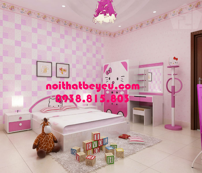 Phòng ngủ đẹp cho con gái được thiết kế theo bộ phòng ngủ hello kitty