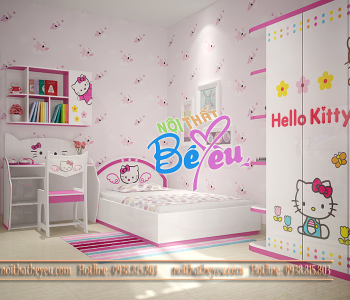 Phòng ngủ trẻ em cho bé gái màu hồng kitty