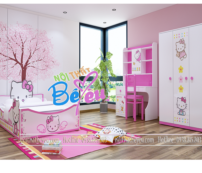 Phòng ngủ trẻ em cho bé Gái Hello Kitty gồm: