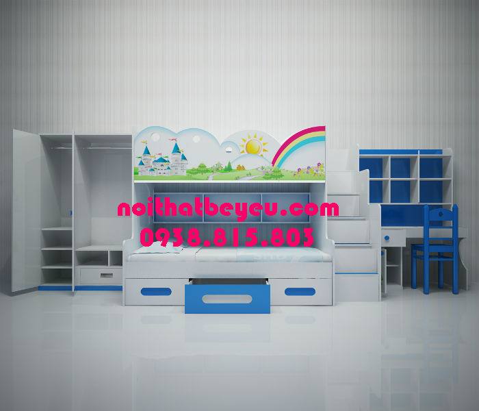Phòng ngủ trẻ em là nơi bố mẹ quan tâm đến không gian của bé làm sao để có một phòng ngủ tiện ích vừa vui chơi và học tập cho bé, trong khi diện tích phòng ngủ của bé ngày càng nhỏ. vì vậy để cần có một không gian tiện ích các bạn không ngần ngại gọi cho nội thất bé yêu để được tư vấn miễn phí hoàn toàn