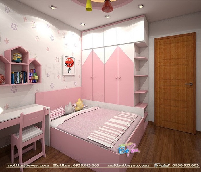Trang trí và thiết kế phòng ngủ đẹp cho bé gái được nhiều gia đình chú trọng đặc biệt là dành cho các thiên thần công chúa, vì vậy tông màu hồng kết hợp màu trắng là 2 màu sắc ăn ý nhất và được sử dụng đặc biệt.