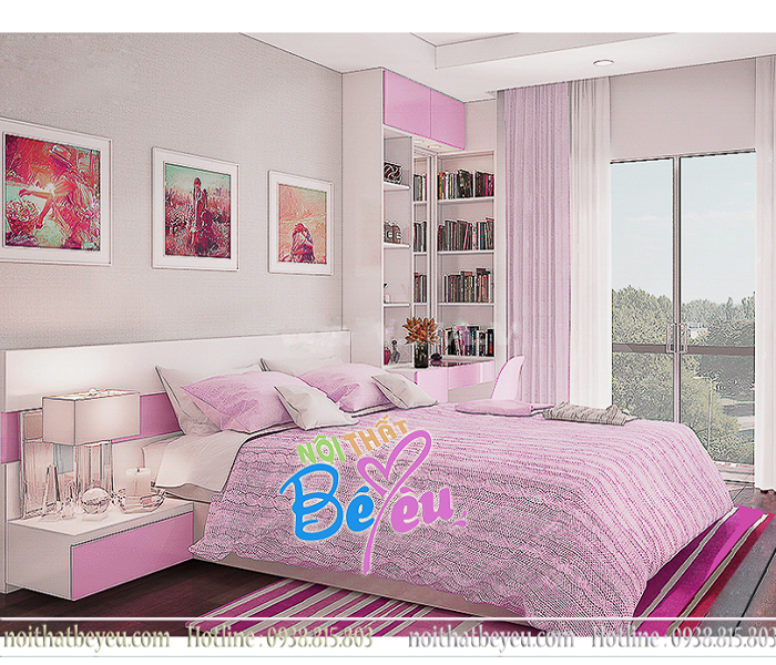 Phòng ngủ bé gái màu hồng xinh xắn