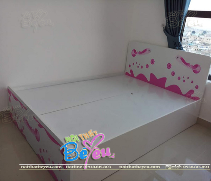 Giường ngủ 1m4 màu hồng với hình ảnh cá voi