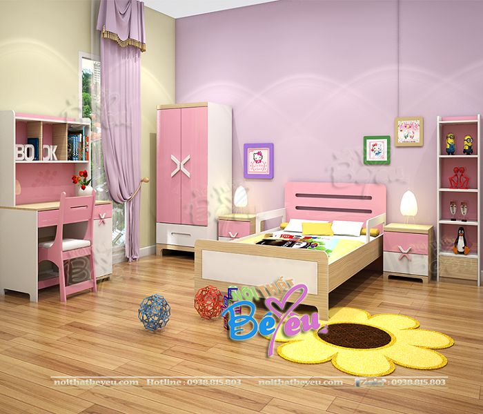 Bộ phòng ngủ được đội ngủ kiến trúc sư Nội Thất Bé yêu thiết kế nhỏ gọn màu sắc hài hòa, tất cả các sản phẩm đều tối ưu trong việc sử dụng cho các bé
