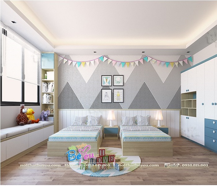 Không gian của 2 bé được Nội Thất Bé yêu bố trí thiết kế đẹp và thông thoáng