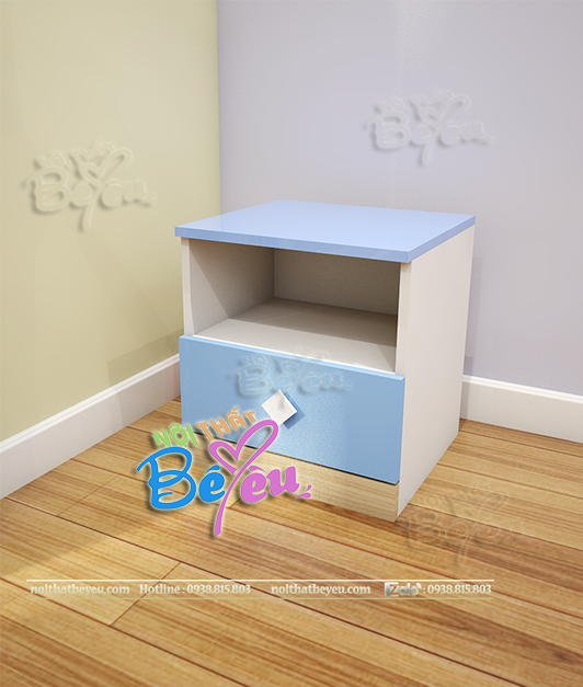 Tủ đầu giường được thiết kế có hộc trống và 1 hộc kéo đầy đủ công năng cho bé