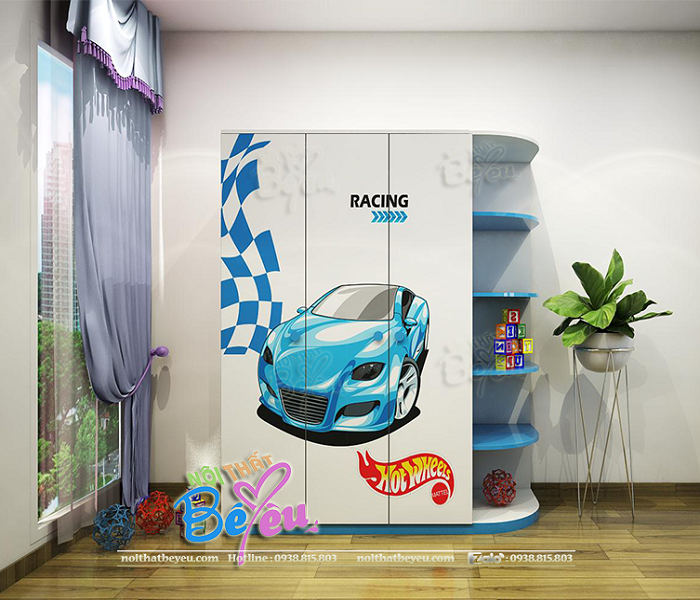 Tủ Áo cho bé trai ô tô 3 cánh