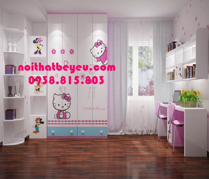 Tủ áo trẻ em bằng gỗ được in hình Hello kitty